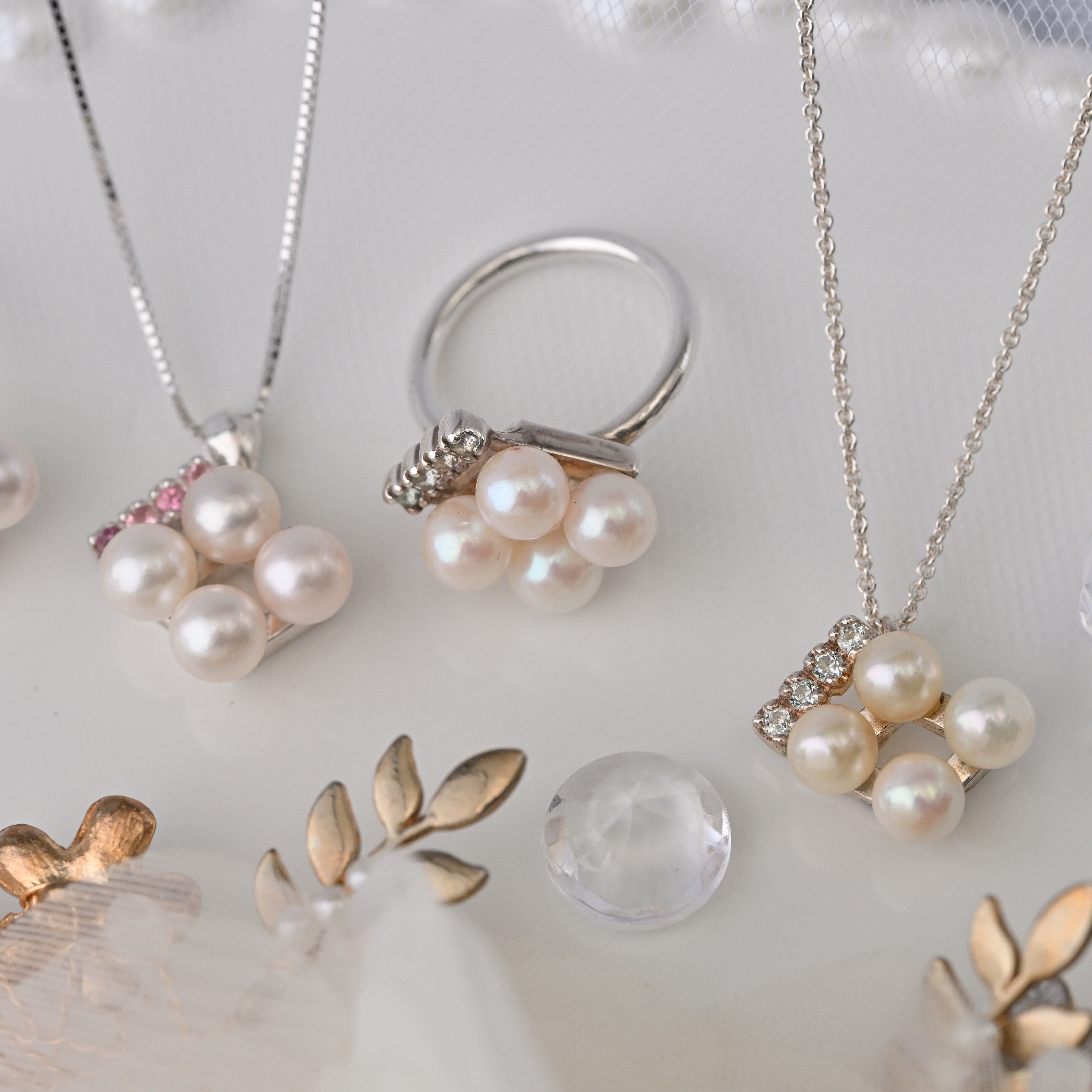 真珠ジュエリーは繊細のため、取り扱いには⼗分な注意が必要です。
