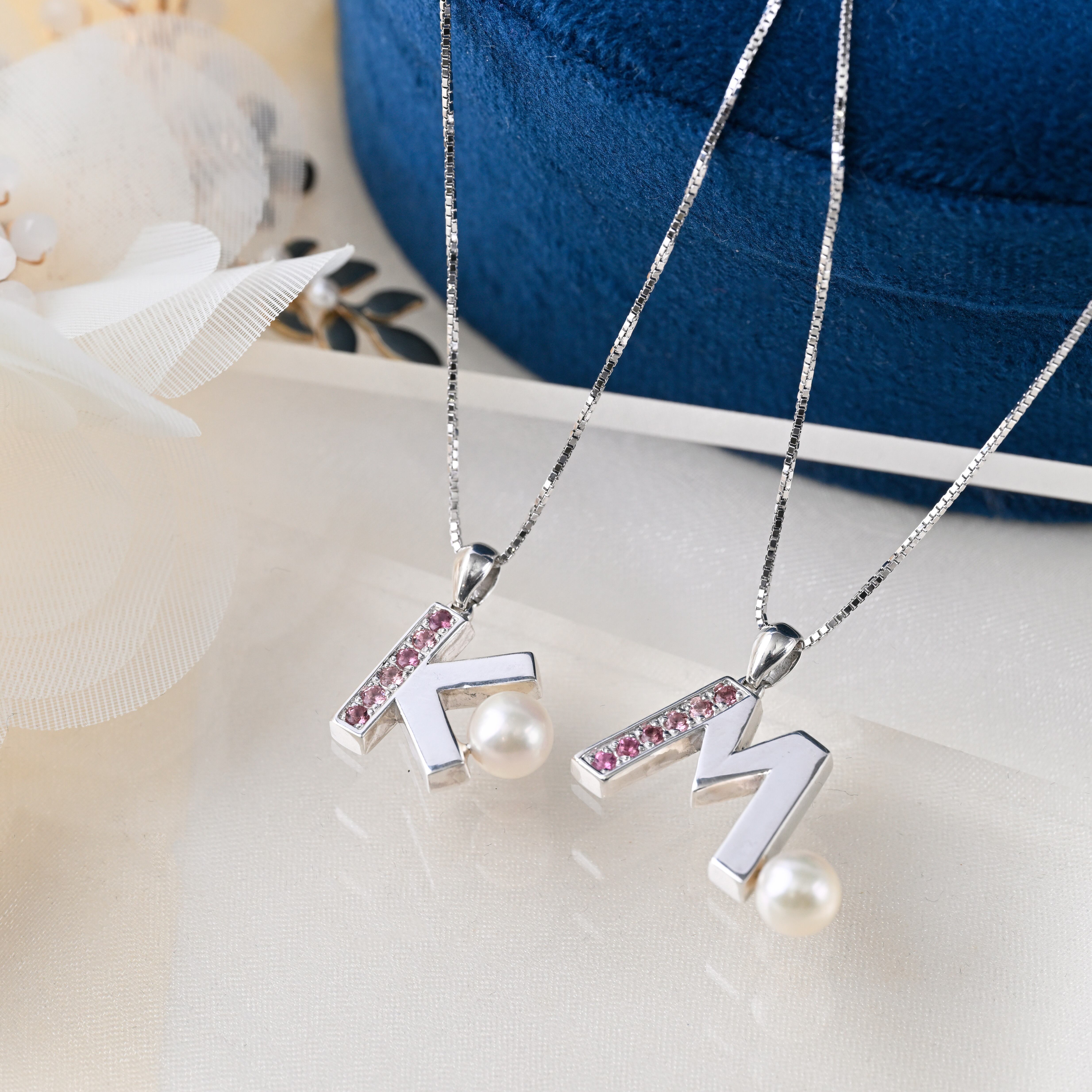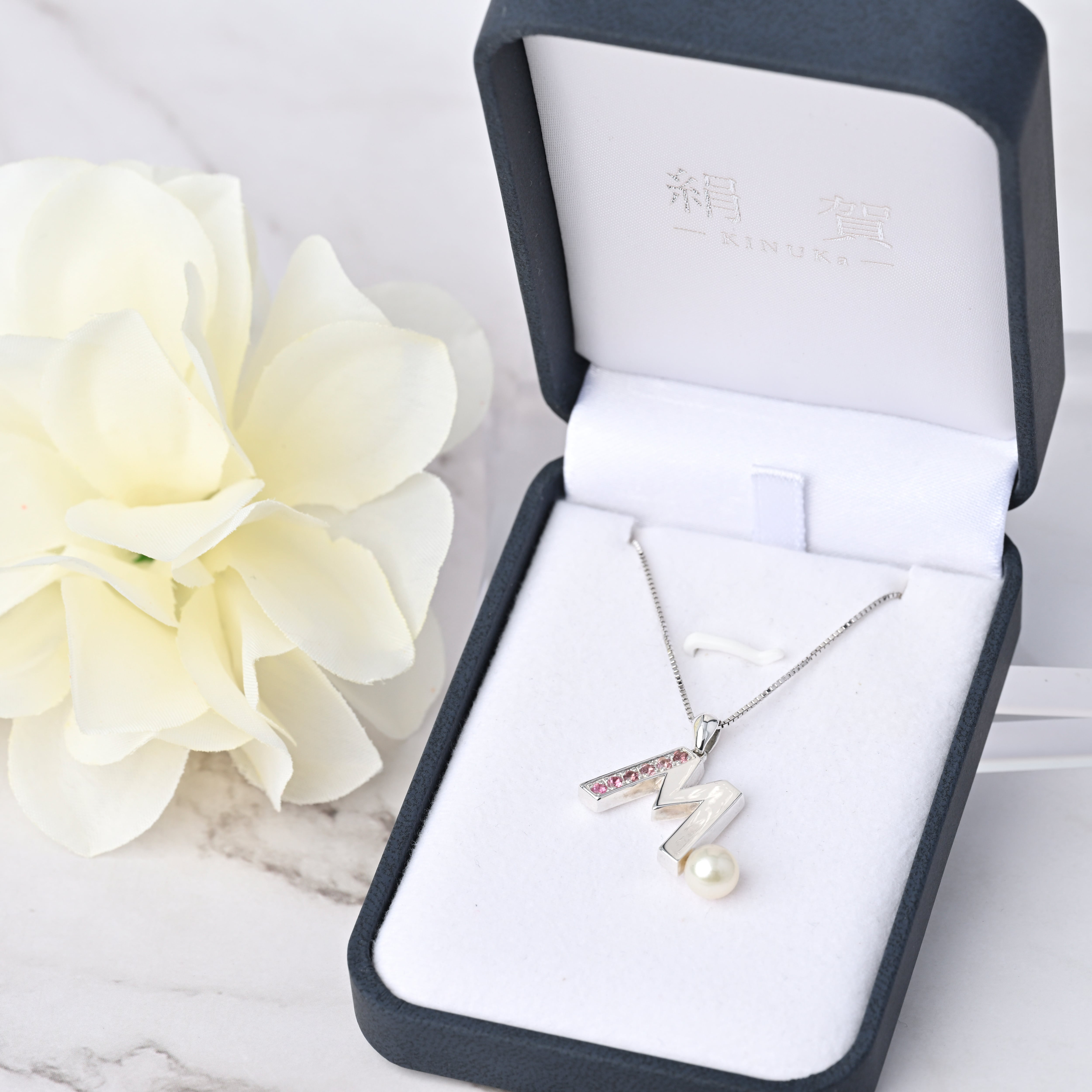 ⾃分のイニシャルをパールと組み合わせることで、⽇常にそっと上品な個性を添えるジュエリ