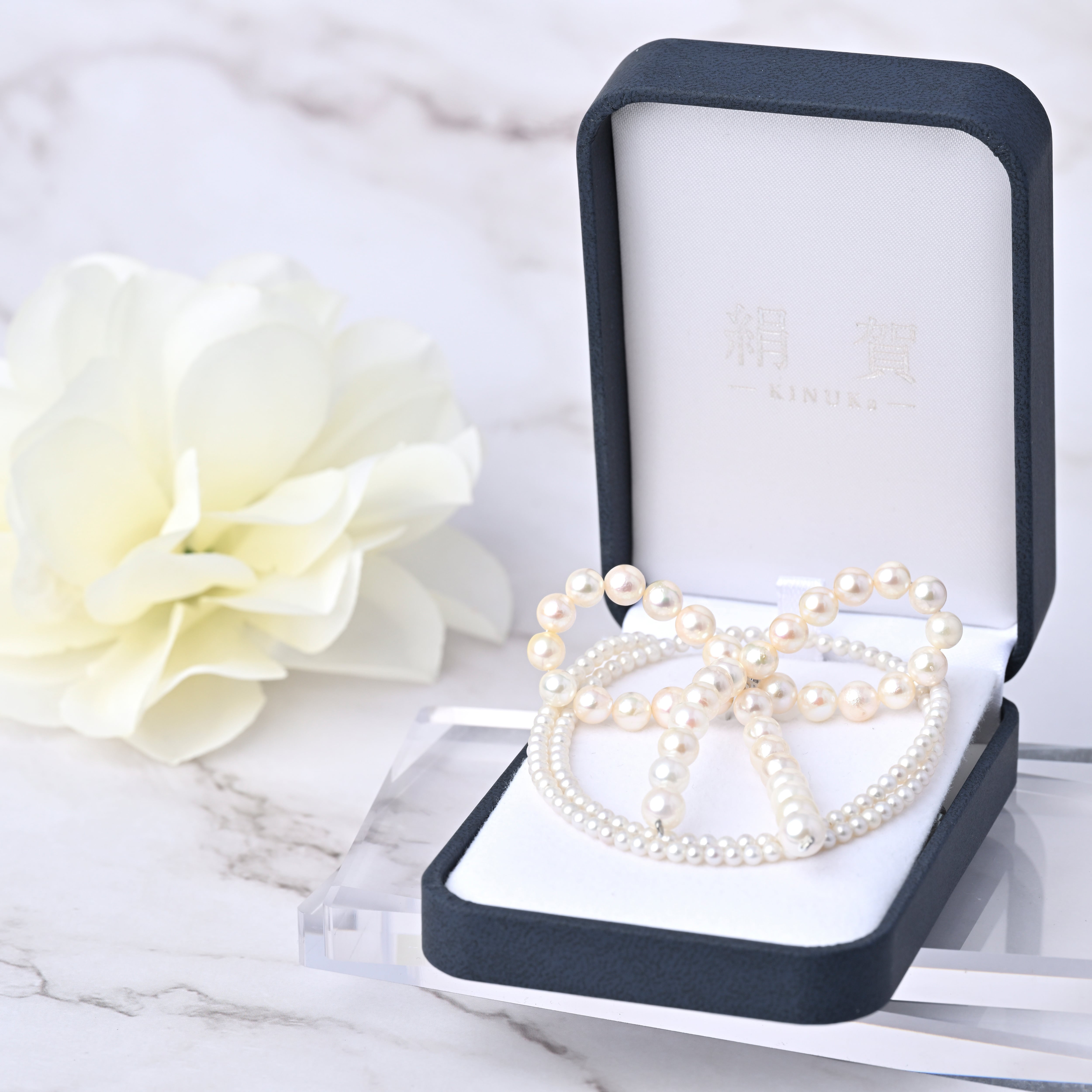 真珠ジュエリーは繊細のため、取り扱いには⼗分な注意が必要です。